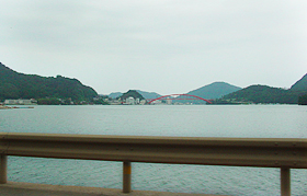 橋の真ん中が島根鳥取の県境 桁の高い眺めのいい大橋。 この橋、何年か前までは有料だったんだよね 431号で米子に向かった。 |