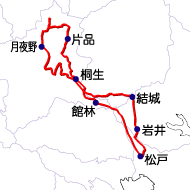 〜三夜沢〜353号〜桐生〜50号〜結城〜県道〜松戸 |