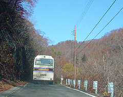 森の中を進むと前にバスがいた。(あちゃー)このバスがまた遅い上に黒煙を撒き散らしでムカついた。