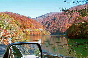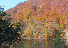 ここで気まぐれ。紅葉がいい感じなので、ちょっと横道に入って奥利根湖へ向かってみた。 |