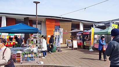 来てみたら駐車場はそうでもないけど人はやたら多く、建物の前にはテント販売が並んでてごちゃごちゃと混み合っていた。