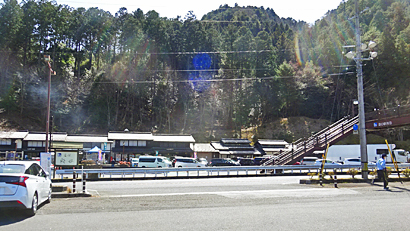 そんなわけではじめてこっち側で降りたけど、駐車場の端からは裏の木曽川の谷が覗けた。