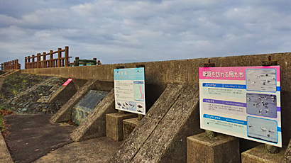 見晴らし台のスロープにある横断幕や見晴らし台の左側にある案内板には「ラムサール条約」の登録湿地として「肥前鹿島干潟」が出てた。