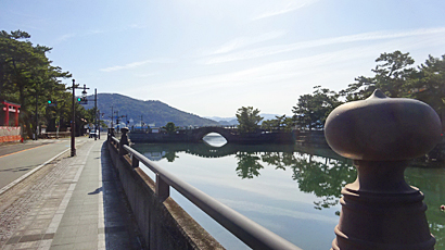 まぁ川とは言っても陸地化した海の名残の水路のような場所(地図には市町川とあった)、汽水よりも海水に近い感じだろうから海水魚がいてもおかしくはないけど、都市部の観光地前のこんなところに、おいしく料理されるような魚で刺身にもよさそうな大きさのが泳いでるのが普通に見えててちょっと驚いた。