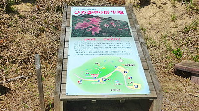 散策道入口にある案内板には「毎年6/1~15はひめさゆり祭りが開催されます」とあった。六月かぁ。六月ねぇ。ひと月早かったわ。