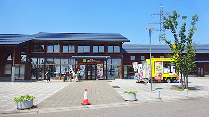 けどなんかもう店入る前から車両販売で気になる地域ものグルメ。たくさん並んだ幟がどれも興味をそそる。。