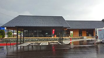 道の駅は開店五分前で入れず、前の屋根付きテラスで雨宿り。