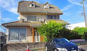 けど、ラーメン屋そのものが見当たらず、あれ?スーパーの中なのかな?と一瞬思ったけど、いやまてよ、まさかこの駐車場の後ろの家か?と、前の道に出て表にまわってみたら、玄関口にさりげなくラーメン柄の暖簾が掛かっててそうらしかった。。