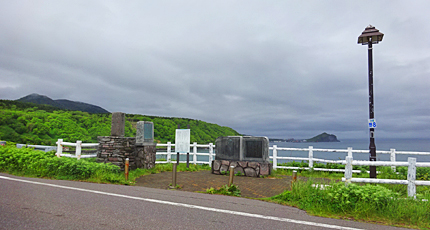 でも多分、ホントの展望のメインは、見返した先の利尻富士なんだろうね。そいいえば駐車場には山をモチーフにしたようなオブジェがあってフォトスポットっぽくなってたし、「国立公園利尻島」という大きな石柱も山をバックに写真撮るためのものだろうなぁと思えた。まぁ、山は完全に雲に覆われてぜーんぜん見えないんだけどね。んーくやしい。