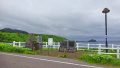 そしてここの北側にももう一つ写真説明ボードが足元にあって、そっちはもう写真も文字も剥げてて何が何だかわかんなかったけど、先の海岸を見ると、もう一つ先の突き出た岩場にも標柱が立っているのが