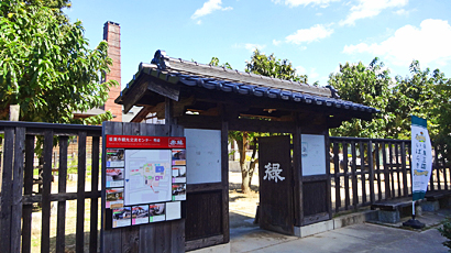 煙突の先にケヤキの広場があって、そこにある本蔵と主屋が明治建築の国有文。