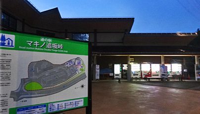 大概の道の駅はトイレ近くに自販機があるように思うけど、ここは売店側の別の建物の方にあった。トイレ(と情報コーナー)の方は木の柱で最近っぽい感じなので、こっちは後から新設したのかもと思えた。