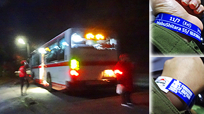 バスは二台目で座って乗れて、駐車場に着く頃には完全に真っ暗になってた。丸一日たっぷりの観戦エリアだった。