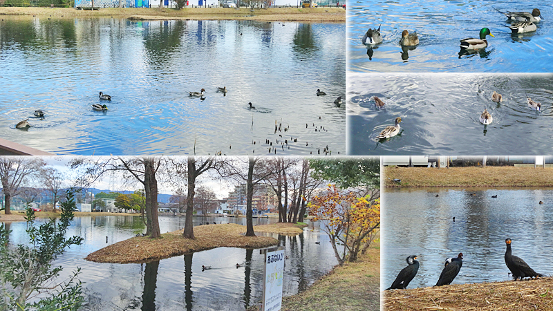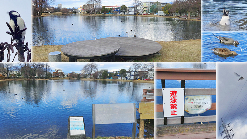 そして公園の南側。こっちもやっぱり水鳥浮いてて、オナガガモはどの子も水中に首つっこんで探ってた。とくに逆さまになって尻が持ち上がった姿が長い尾がピンと立ってて面白く、メスは尾が長くなくて丸っとした尻でカワイかった。オオバンは普通に潜ってた。