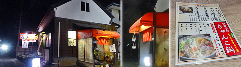 「ちゃんこバラ焼き、馬スジ煮込み」とある看板が気になってた店。