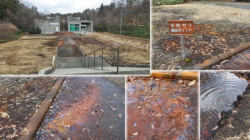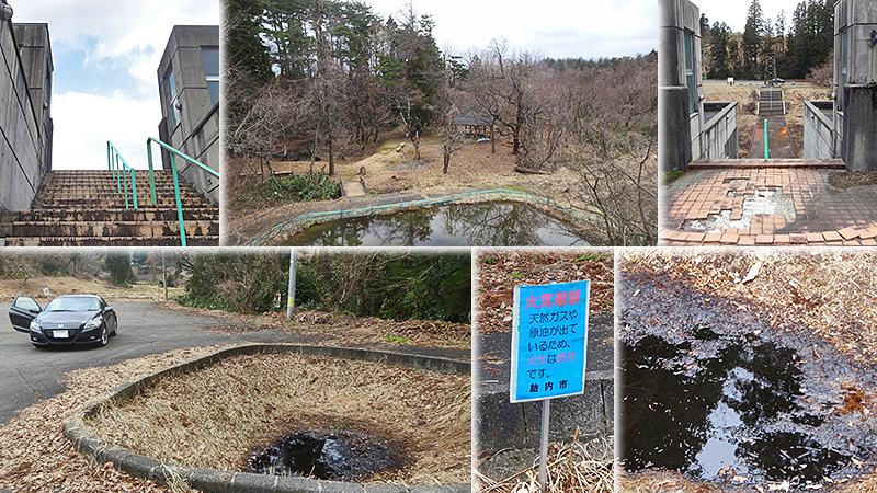 以前、此処胎内市の海沿い(113号)を走ってて海上に見かけた洋上プラットフォームに興味持って、帰ってたから調べたら国内唯一の海洋油ガス田だそうで、この地域は古くから石油の沸く地域で、実際に原油が湧き出している公園があると知った感じだったかな。