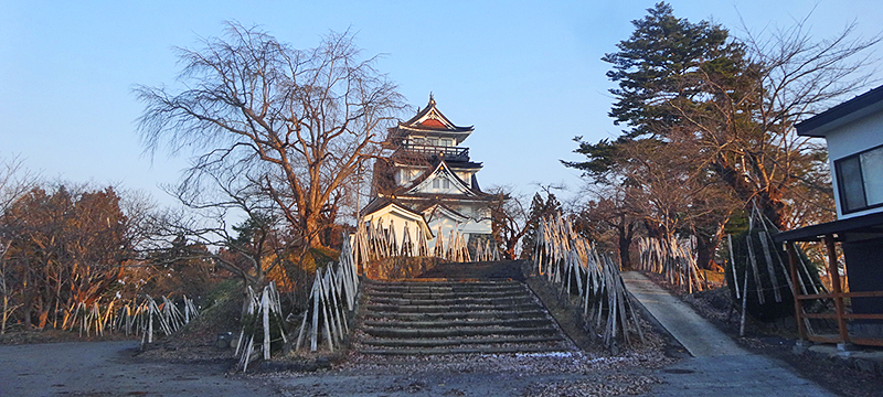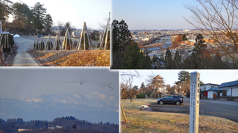 町の端の山にある城だけど駐車場は上にあったのでほとんど登らなくて済むありがたい城跡公園。(この駐車場のトコが真冬には伝統行事でカマクラ作られる広場らしい)