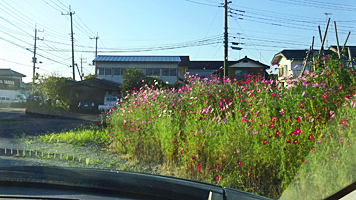でも125号に出てすぐ先に、駐車場にコスモスが沢山咲いた食堂を見かけたので寄ってみて食事休憩。![]()