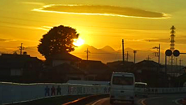 ここからは県道で尚も西。本庄市に入って元小山川を渡る橋で先の山に日が沈むのが見えた。
