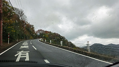 でもこの雨は割とすぐパタッとやんで山に差し掛かるころには路面も濡れてなかった。ナイス。っていうかこの山道で土砂降りはイヤだわ。