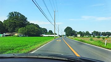 その前の県道も進むと広域農道の入り口で、定番コースに戻った。ガラガラではないけど、青々した田圃道をのんびり空調ドライブ。天井は「あつい」と閉められた。。