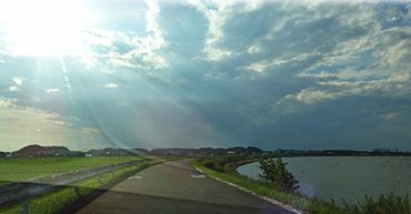 いつものように妙岐ノ鼻でちょっと折れて霞ケ浦の岸をちょこっと進んだ。湖や蘆原は曇ってパッとせず、正面先の雲から出かかった西日のこぼれた陽光がいい感じ。いやもうそのまま陰っていいよ。でも陰っても厚いんだよね。。また豪雨もうんざりだし。