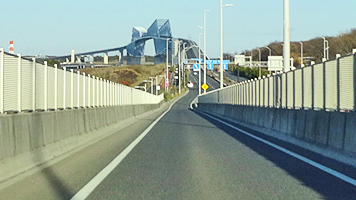 そして羽田方面に折れるつもりだったけど、やっぱりゲートブリッジが気になって逆方向。戻る方向で東京ゲートブリッジに進みつつ、登れるかな?と袂の側道にまわってみた。