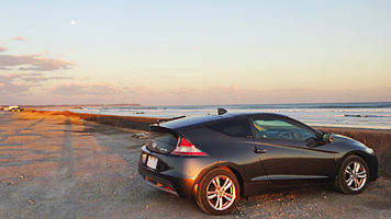 (海は見えない)ビーチラインに出たのが5時。なんとか日が暮れる前に海側に出れたけど、低くい夕日が真正面でいつも以上に眩しい道。少し慎重に進んで最近通過しがちの中谷里海岸に今日はしっかり折れて海岸で潮見休憩。
