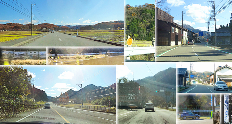 湖北で北の奥の琵琶湖を見つつ、高月で湖から離れると右後ろに日が昇った。木之本の8号に出る手前では田畑に靄が低く立って朝日に揺れて幻想的だった。ちょっと横道に折れて低い膜の雲のような靄の中を通ってみたい衝動にかられたけど、躊躇してたら8号に出てしまった。