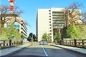 そして県庁などのある福井城跡に来てみた。堀を渡った県庁側の駐車場は県庁が閉まってるので開いておらず、停められずにロータリーから奥までひとまわりして戻った。石垣に登る道は工事で閉鎖されてたので停めても見るトコ無さそうだった。