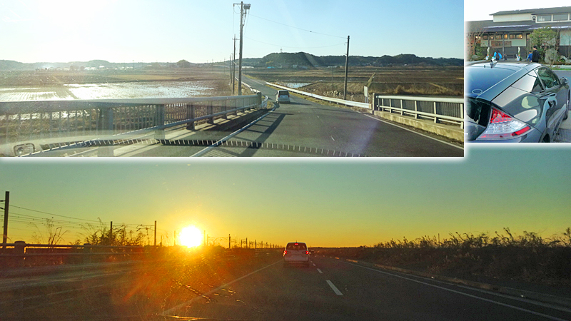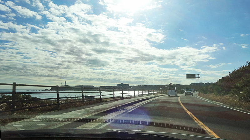 そして坂を下って海岸ドライブ。君ヶ浜では西日で海が輝いていた。元日はチラ見だけだった海だけど、今日はしっかり見て満足。