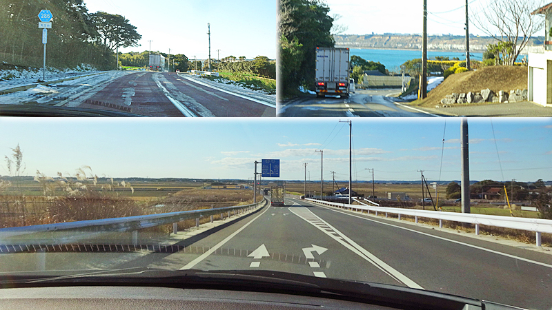 この道も丘の上は路面に雪が残ってたけど、それより少し先の屛風ヶ浦の屏風の断崖がクッキリよく見えてて冬ってこうなのかと些と驚いた。