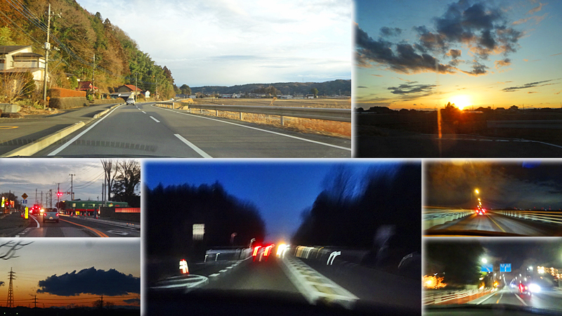 これで折り返し。293号をちょこっと進んで県道を南下。丘の間の広々し道。ちょこっと細い区間もあったけどずっとゆったり走れた。そして横目に夕日が眩しく、芳賀の祖母井を抜けた頃に日が沈んだ。
