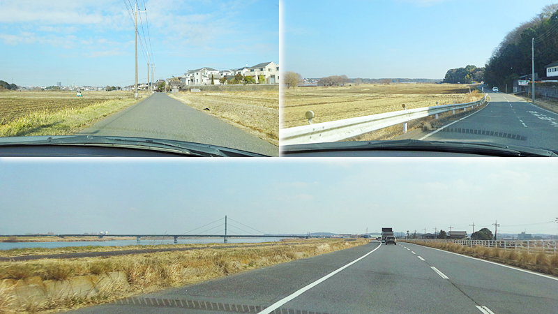 1時の出発。裏の県道で横利根川沿いに少し進んで51号に戻って牛堀で355号に折れた。