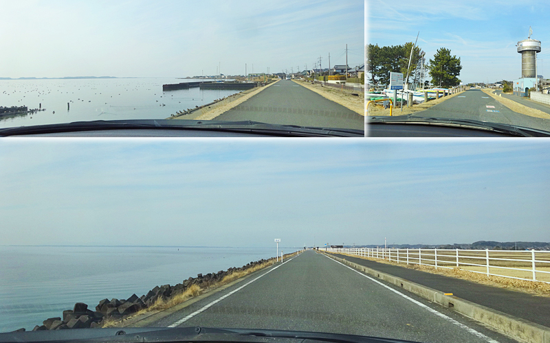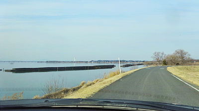 水面は穏やかで西の太陽ももやッとしてて日差し柔らかく、冬ならクッキリ見えそうな筑波山ももやッとして見えず、むしろそんな感じだからこそ湖面が広く感じて悠々ドライブ。ほぼ徐行で前の車に追いつくことはなく、さりとて後続に追いつかれることもなくのんびり進めた。