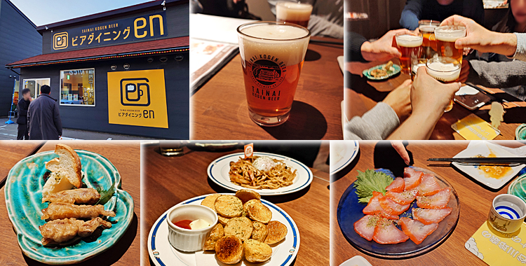 お店は「ビアダイニングen」、遠征四人+地元二人の六人で宴。