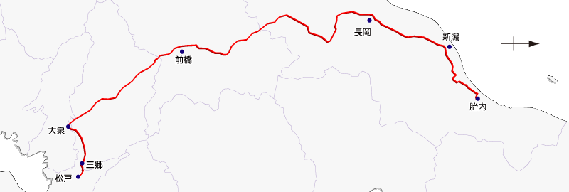 松戸~県道~三郷~圏央道・関越道・北陸道~新潟~県道~胎内