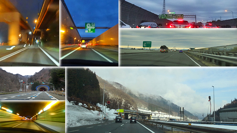 ツルツル流れて関越トンネル。7時痼過ぎで新潟県。トンネルを出ると雪国で晴れてて気持ちよかった。